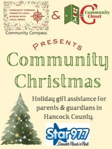 Community Christmas! 2025 COMMUNITY CHRISTMAS! HELP STAR 97.7, COMMUNITY COMPASS, AND COMMUNITY CLOSET 207 DELIVER CHRISTMAS GIFTS TO CHILDREN IN NEED! To sign up and for GENERAL INFO, CLICK THE IMAGE BELOW or CLICK HERE!